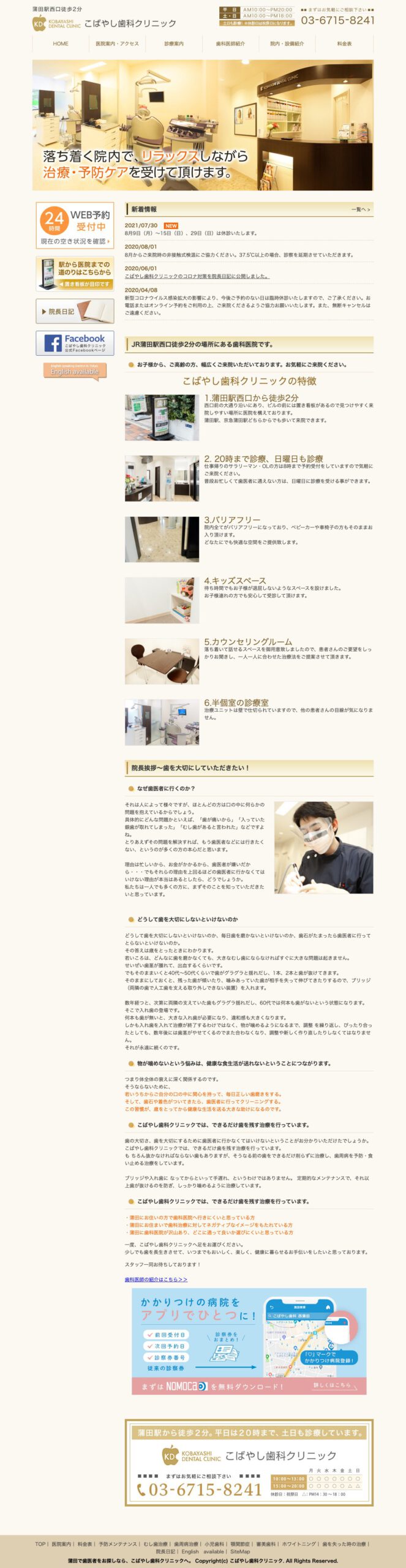トップページで医院の情報がわかりやすくし、必要な情報を明確に伝え、クリニックのサービスやスタッフに関する情報を提供します。