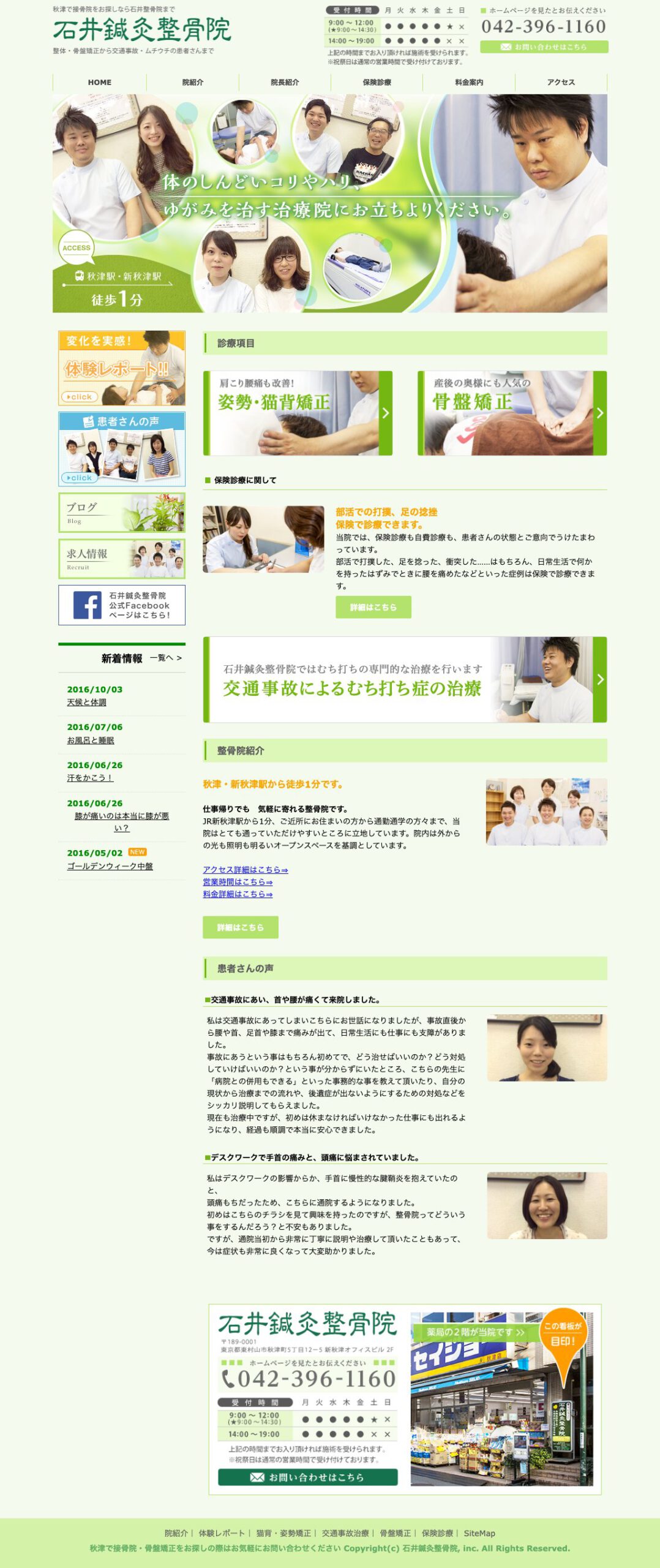 トップページで、医院の情報が簡単にアクセスできるようにデザイン。