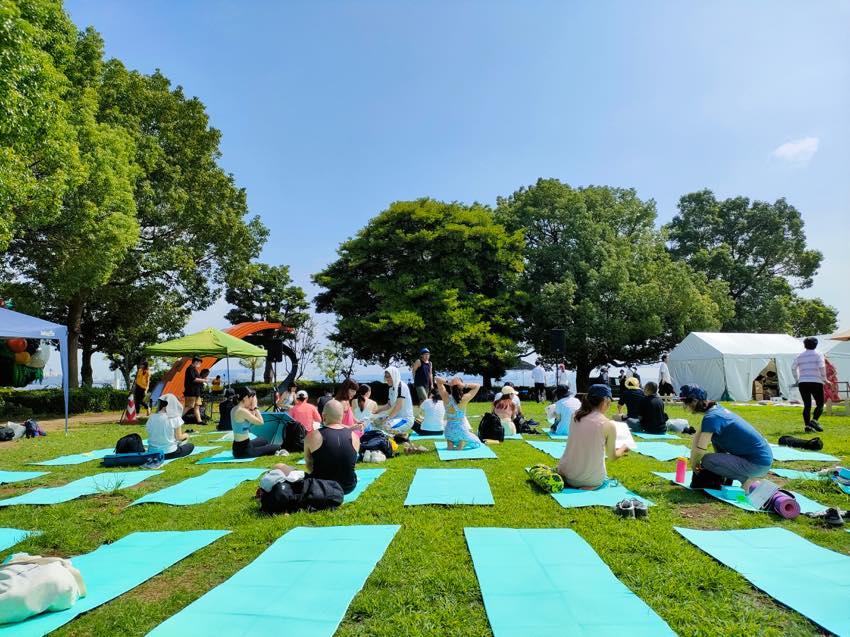 天候にも恵まれ、青い海と空、緑の芝生の上で無料のパークヨガに参加することができました。開放感あふれる空間で、心身ともにリフレッシュすることができました。